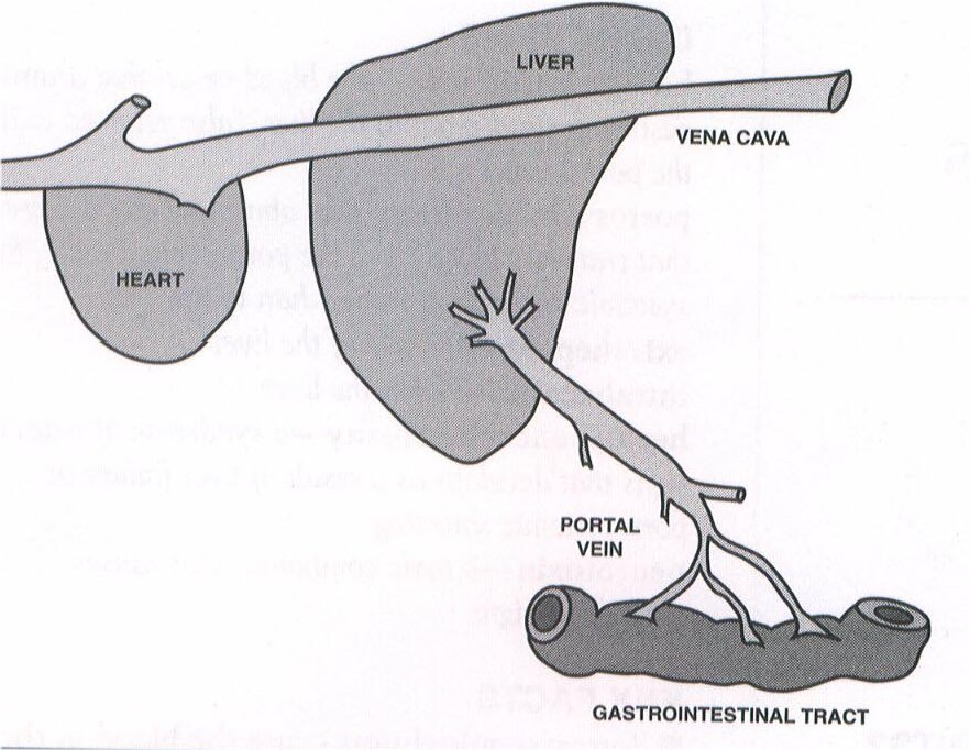 Schematic representation of the hepatic portal vein, gastronintestinal tract, and