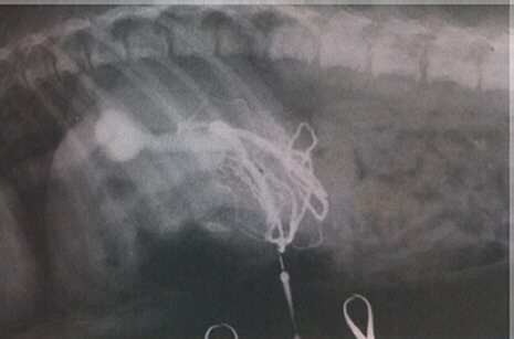 Contrast radiography. Note the passage of contrast agent from the exteriorized