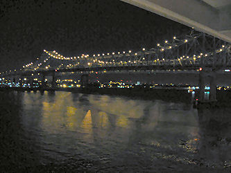 6 am. This is the Mississippi River bridge from our balcony. It connects