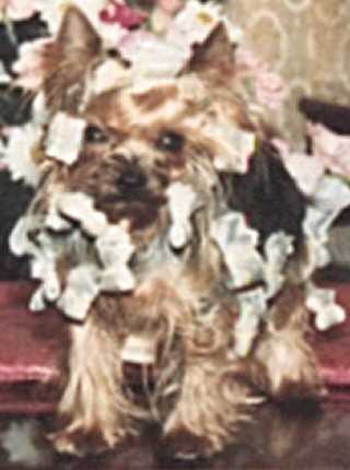 | This is a picture of a fully wraped Yorkie. You can see where the |